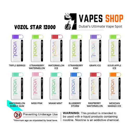 The Vozol Star prioritizes user safety with mouthpiece protection and is crafted using post-consumer recycled plastic, emphasizing sustainability. Available in an array of flavors including Tobacco, Blue Razz Ice, Grape Ice, and more, this disposable vape caters to diverse taste preferences, promising a delightful and fulfilling vaping experience for enthusiasts in Dubai, UAE.